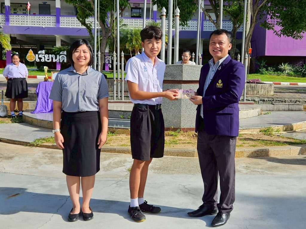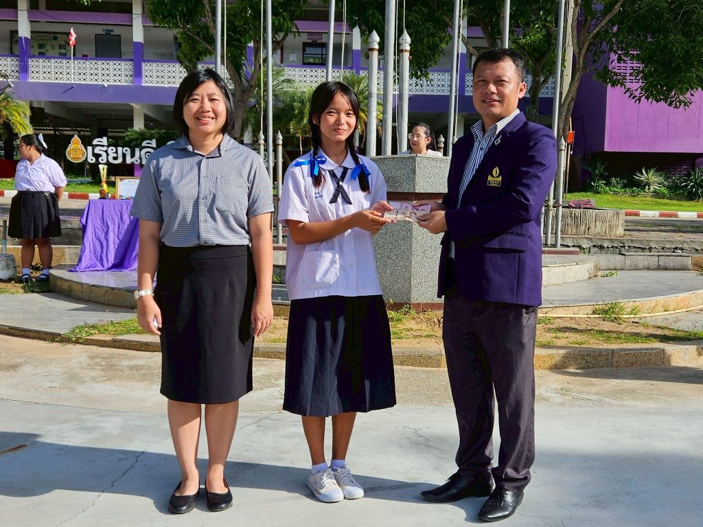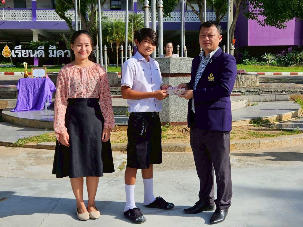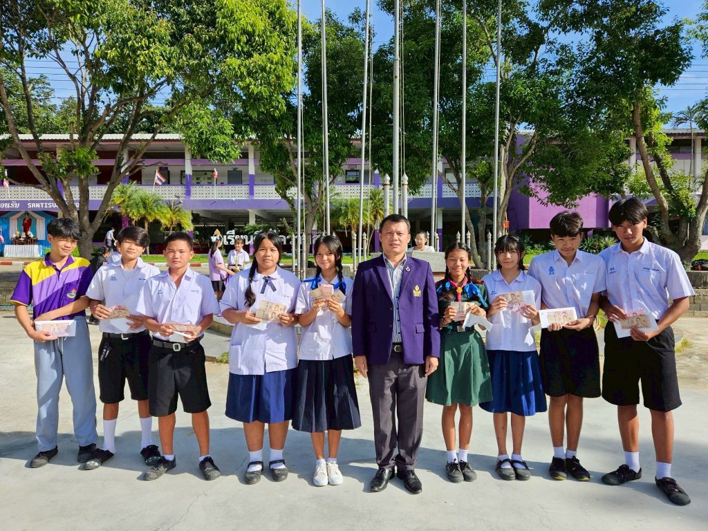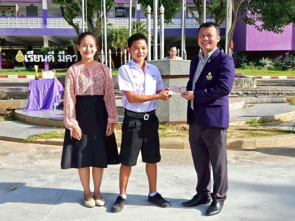 นายภานุ จันทร์ชม ผู้อำนวยการโรงเรียนสันติสุข ได้มอบทุนการศึกษาให้กับนักเรียน จำนวน 3 ทุน ดังนี้