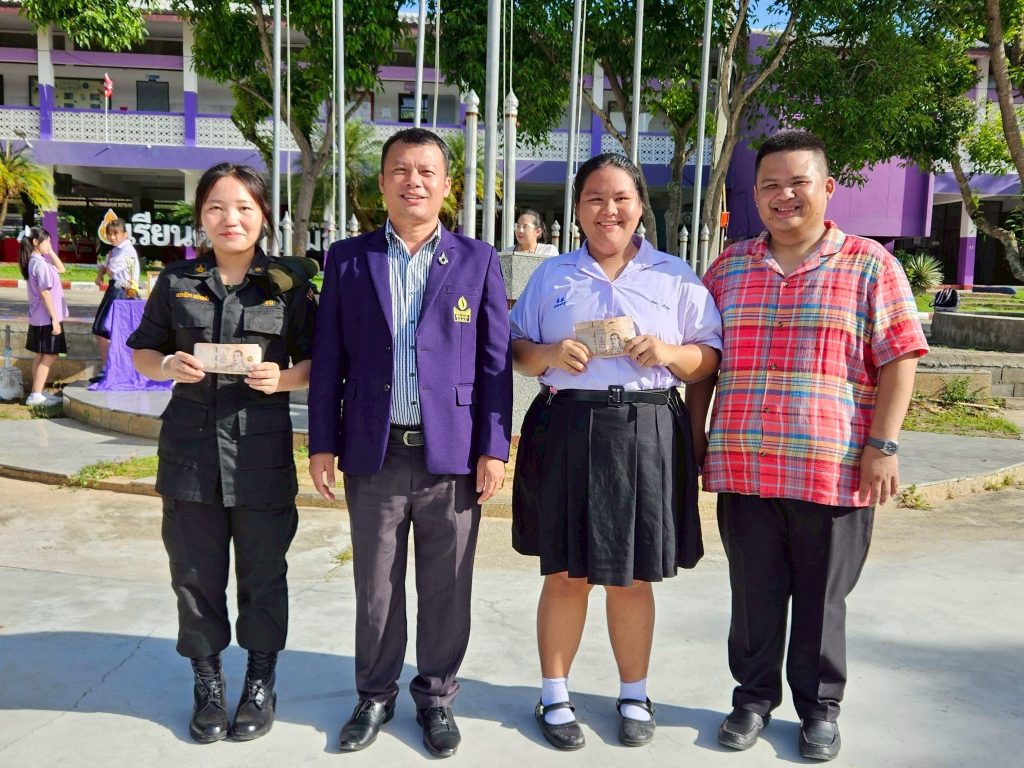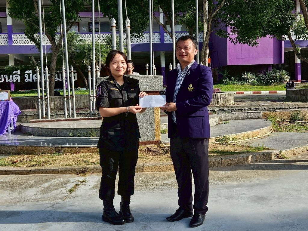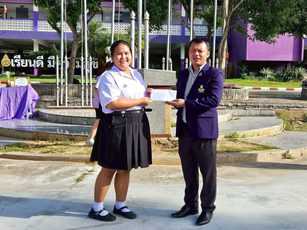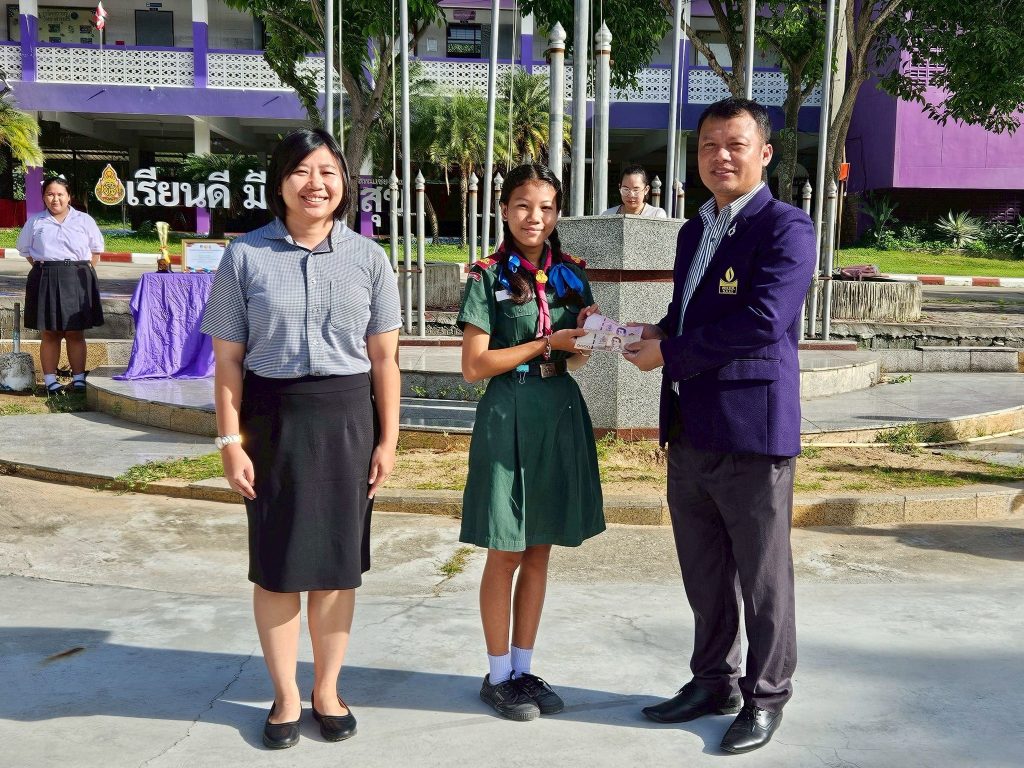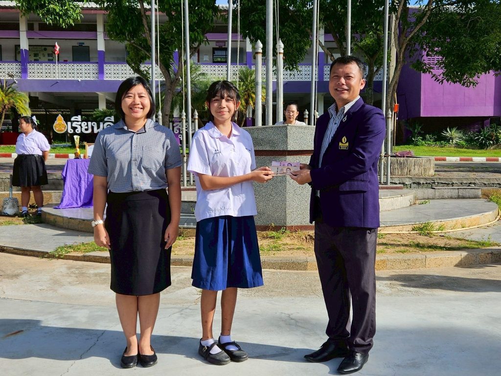 นายภานุ จันทร์ชม ผู้อำนวยการโรงเรียนสันติสุข ได้มอบทุนการศึกษาให้กับนักเรียน จำนวน 3 ทุน ดังนี้