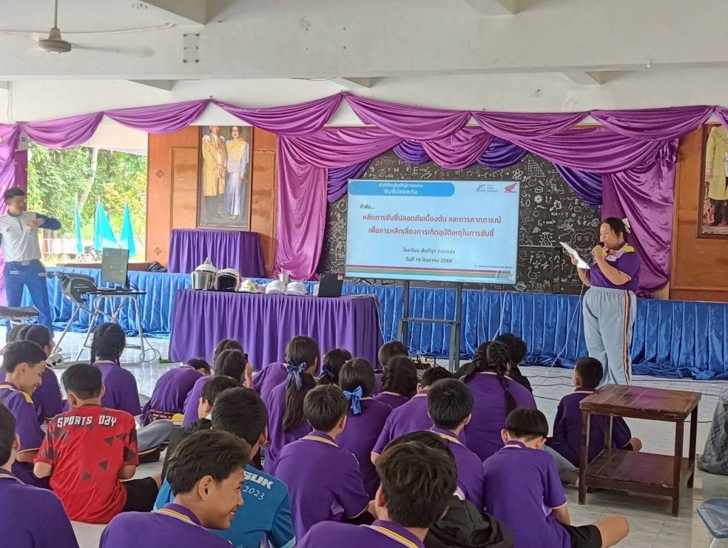 นักเรียนโรงเรียนสันติสุข สพม.เชียงใหม่ ได้เข้าร่วมกิจกรรมการอบรมเชิงปฏิบัติการ จากบริษัทฮอนด้า เมืองไทย ขับขี่ปลอดภัย เรื่องหลักการขับขี่ปลอดภัยเบื้องต้น และคาดการณ์เพื่อการหลีกเลี่ยงการเกิดอุบัติเหตุในการขับขี่ โดยคุณชินโชติ คฤหาสน์ทอง และคุณวีรภัทร มงคล พร้อมทั้งเข้ารับการปฏิบัติขับขี่รถจักรยานยนต์จากเครื่องจำลองการขับขี่ Riding Trainer และการขับขี่จริง